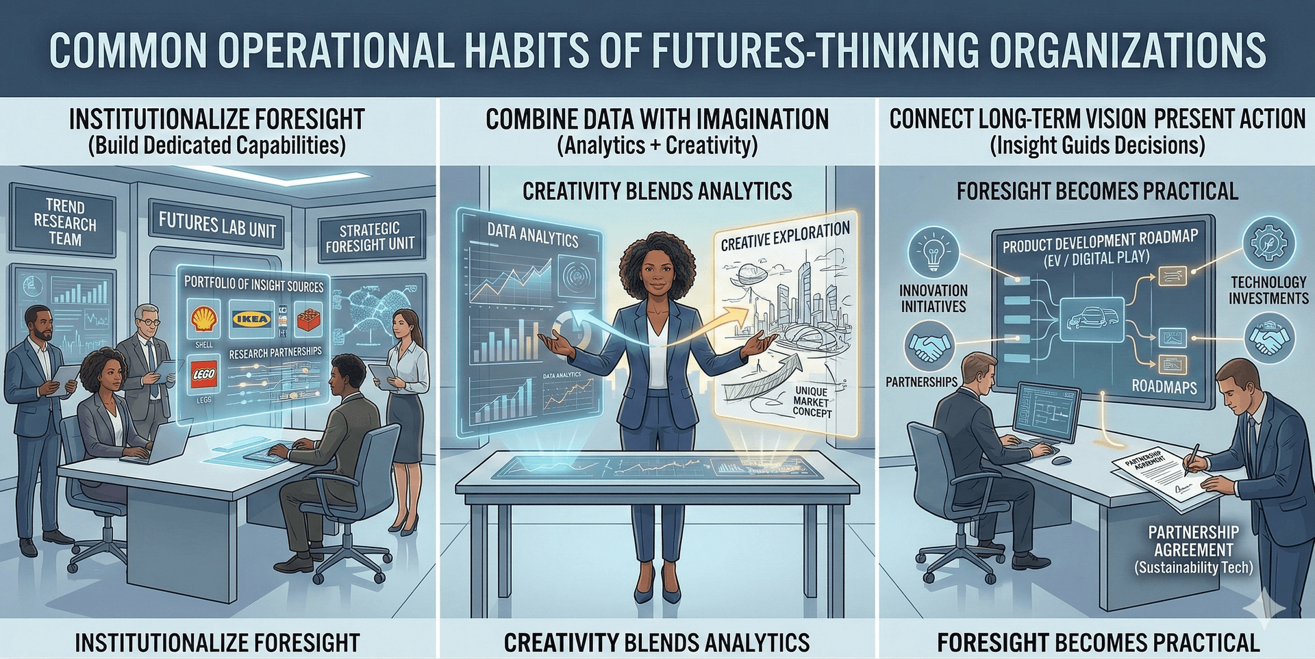 Across industries, organizations that successfully apply futures thinking tend to share several operational habits.